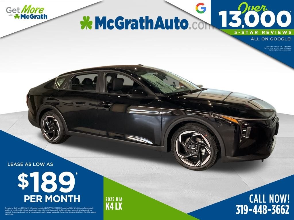 Prices may change at any time and are subject to availability and prior sale. Taxes, title, license fees, and a $180 documentation fee are not included. Pricing reflects all applicable rebates and incentives assigned to the dealer. Example payments are estimates; actual terms vary based on credit approval. APR and payment estimates apply to qualified buyers, not all buyers qualify for advertised rates. Factory cash incentives may not be combined with promotional APR. Fuel economy ratings and driving range figures are based on EPA estimates for new vehicles, and actual mileage and range may vary. Some in-stock vehicles may include a $1,295 Clear Guard Protection package By submitting your phone number online, you consent to occasional SMS or voice calls about our products and promotions; standard messaging rates may apply. Consult dealer for offer eligibility and other details. Factory MSRP is not the final advertised/asking price of the vehicle. Fuel economy figures are official EPA estimates and clearly labeled as such. Discount includes $1,500 McGrath Auto Trade in assistance discount, buyer must trade a 2009 or newer vehicle to qualify for this incentive. Price includes: $1000 - KFA Dealer Choice Program: $1000 discount and 5.25% APR for 36 months. $30.08 per $1000 financed. Available to well qualified buyers who finance through Kia Finance America. 506. Exp. 03/31/2026