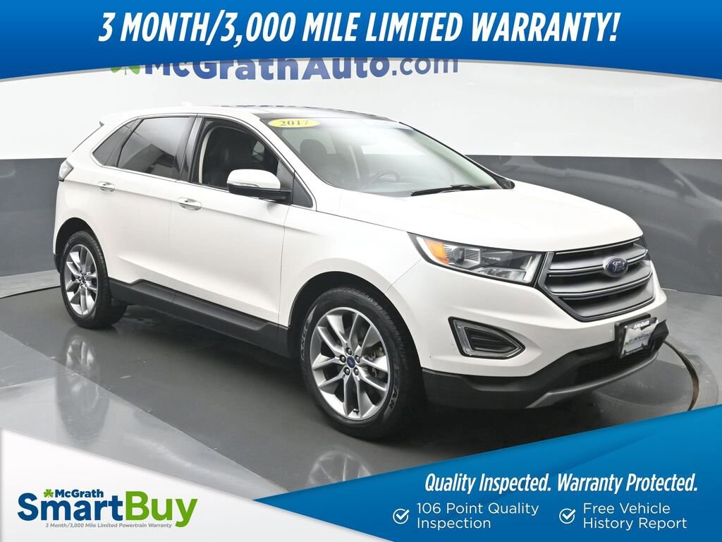 AWD. 20/27 City/Highway MPGCertification Program Details: McGrath SmartBuy Benefits: * 3 Month / 3,000 Mile Limited Powertrain Warranty * Free Vehicle History Report * 106 Point Full Vehicle Condition Inspection 2017 Ford Edge Titanium EcoBoost 2.0L I4 GTDi DOHC Turbocharged VCT AWDWe're in the customer service business first, the car business second.- H.B. McGrath. Our goal is to offer our customers great vehicles at unmatched prices, but the car business isn't just about the product, it's about the people. Welcome to McGrath, your destination for award-winning automotive excellence! Wwe were voted CBJ's 2024 #1 Coolest Place to Work and winner of 2024 Best of the Best Auto Dealer, Auto Service, and Fleet Dealer. We’re proud to deliver unmatched quality and service. With over 11,000 5-star Google reviews, our customers’ trust and satisfaction drive everything we do. Whether you’re buying, servicing, or building your fleet, experience why McGrath is the top choice for all your automotive needs! If we aren't making our customers happy, we aren't in business. It's as simple as that, and we intend to deliver on the promise: Get More with McGrath.Prices may change at any time and are subject to availability and prior sale. Taxes, title, license fees, and a $180 documentation fee are not included. Pricing reflects all applicable rebates and incentives assigned to the dealer. Example payments are estimates; actual terms vary based on credit approval. APR and payment estimates apply to qualified buyers, not all buyers qualify for advertised rates. Factory cash incentives may not be combined with promotional APR. Fuel economy ratings and driving range figures are based on EPA estimates for new vehicles, and actual mileage and range may vary. Some in-stock vehicles may include a $1,295 Clear Guard Protection package By submitting your phone number online, you consent to occasional SMS or voice calls about our products and promotions; standard messaging rates may apply. Consult dealer for offer eligibility and other details. Factory MSRP is not the final advertised/asking price of the vehicle. Fuel economy figures are official EPA estimates and clearly labeled as such.