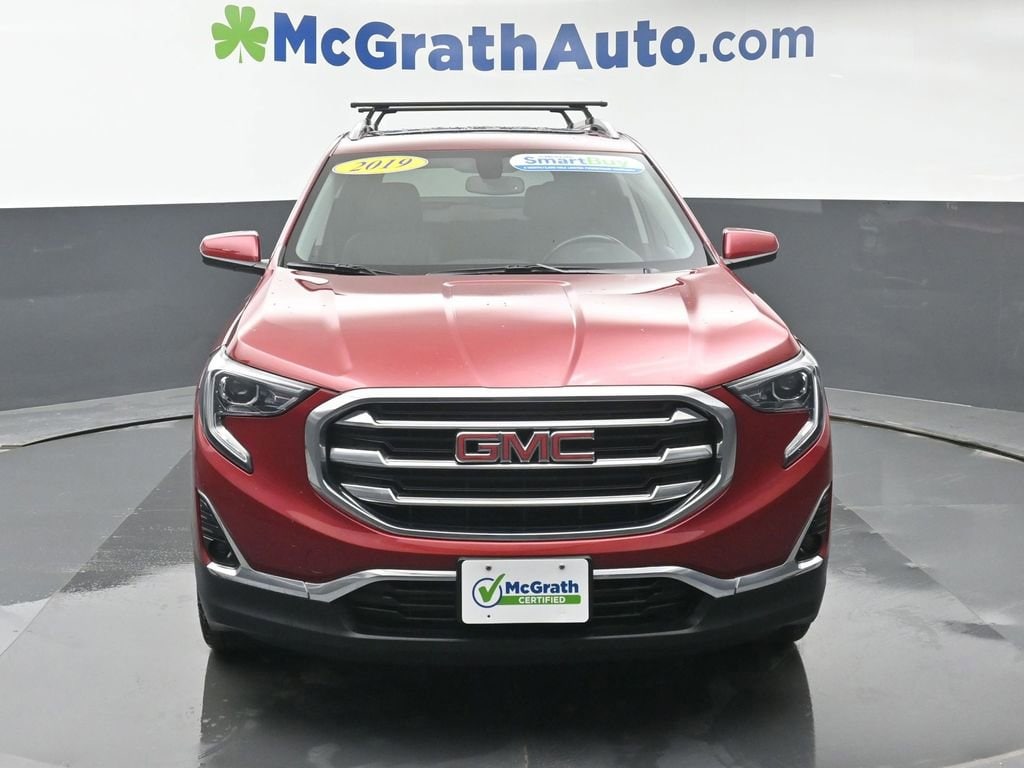 Discover the perfect blend of style, power, and versatility with this 2019 GMC Terrain SLT. Boasting a sleek Red Quartz Tintcoat exterior and a well-appointed interior, this SUV is ready to elevate your driving experience. 2.0L Turbocharged I-4 Engine with 252 hp and 260 lb-ft of torque Skyscape Power Sunroof with Power Sunscreen Preferred Package with Hands-Free Rear Power Programmable Liftgate, Memory Package, and more Driver Alert Package I with Lane Change Alert, Rear Cross Traffic Alert, and Rear Park AssistStep inside and you'll be greeted by premium Perforated Leather-Appointed Seat Trim, a Heated Steering Wheel, and Heated Front Seats, creating a luxurious and comfortable cabin. The 8-inch GMC Infotainment Audio System with Apple CarPlay and Android Auto integration keeps you connected and entertained on the go.This Terrain SLT also boasts impressive safety features, including the Safety Alert Seat, Rear Park Assist, and Rear Cross-Traffic Alert, helping you navigate the road with confidence. The 4-Wheel Antilock Disc Brakes and Electronic Stability Control provide responsive handling and control.Backed by GMC's reputation for quality and reliability, this Certified Pre-Owned Terrain SLT is the perfect choice for those seeking a versatile and well-equipped SUV. With its turbocharged power, advanced technology, and premium amenities, this vehicle is ready to elevate your driving experience.Prices may change at any time and are subject to availability and prior sale. Taxes, title, license fees, and a $180 documentation fee are not included. Pricing reflects all applicable rebates and incentives assigned to the dealer. Example payments are estimates; actual terms vary based on credit approval. APR and payment estimates apply to qualified buyers, not all buyers qualify for advertised rates. Factory cash incentives may not be combined with promotional APR. Fuel economy ratings and driving range figures are based on EPA estimates for new vehicles, and actual mileage and range may vary. Some in-stock vehicles may include a $1,295 Clear Guard Protection package By submitting your phone number online, you consent to occasional SMS or voice calls about our products and promotions; standard messaging rates may apply. Consult dealer for offer eligibility and other details. Factory MSRP is not the final advertised/asking price of the vehicle. Fuel economy figures are EPA estimates.