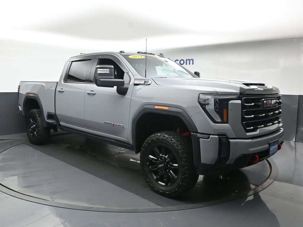 Rugged, Capable, and Refined: Discover the 2024 GMC Sierra 2500HD AT4Elevate your driving experience with the 2024 GMC Sierra 2500HD AT4, a true powerhouse built to conquer any terrain. This exceptional vehicle boasts an impressive array of features, including:- Duramax 6.6L V8 Turbodiesel engine with 470 horsepower and 975 lb-ft of torque- AT4 Premium Plus Package with power sunroof, Technology Package, and high clearance steps- Gooseneck/5th Wheel Prep Package for seamless towing- Hitch Package with gooseneck ball and chain tiedown kit- Snow Plow Prep/Camper Package with increased front GAWR and skid plates- High Idle Switch for improved performance in demanding conditionsThe Sierra 2500HD AT4 is more than just a capable off-road companion; it's a refined and luxurious ride that will elevate your everyday driving experience. Indulge in the Bose Premium 7-Speaker Sound System, enjoy the convenience of wireless charging, and stay connected with the Premium GMC Infotainment System.Step inside and experience the unparalleled comfort of the heated and ventilated front seats, as well as the heated rear outboard seats. The power-retractable black assist steps and the GMC MultiPro Tailgate Step Lights make accessing the cabin and cargo area a breeze.Safety is paramount in the 2024 GMC Sierra 2500HD AT4, with features like Automatic Emergency Braking, Forward Collision Alert, and Rear Cross Traffic Alert. The Bed View Camera with Trailer Camera Provisions and the Integrated Trailer Brake Controller further enhance your towing confidence.This exceptional vehicle has been meticulously maintained and is now available for your consideration. With its impressive capabilities, refined interior, and advanced safety features, the 2024 GMC Sierra 2500HD AT4 is the perfect companion for your next adventure.Prices may change at any time and are subject to availability and prior sale. Taxes, title, license fees, and a $180 documentation fee are not included. Pricing reflects all applicable rebates and incentives assigned to the dealer. Example payments are estimates; actual terms vary based on credit approval. APR and payment estimates apply to qualified buyers, not all buyers qualify for advertised rates. Factory cash incentives may not be combined with promotional APR. Fuel economy ratings and driving range figures are based on EPA estimates for new vehicles, and actual mileage and range may vary. Some in-stock vehicles may include a $1,295 Clear Guard Protection package By submitting your phone number online, you consent to occasional SMS or voice calls about our products and promotions; standard messaging rates may apply. Consult dealer for offer eligibility and other details. Factory MSRP is not the final advertised/asking price of the vehicle. Fuel economy figures are EPA estimates.