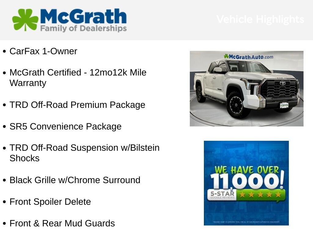 This 2023 Toyota Tundra SR5 is a true workhorse, built to handle any task with confidence. As a McGrath Certified pre-owned vehicle, it has undergone a rigorous inspection and comes with a 12-month/12,000-mile warranty, giving you the assurance of quality and reliability.